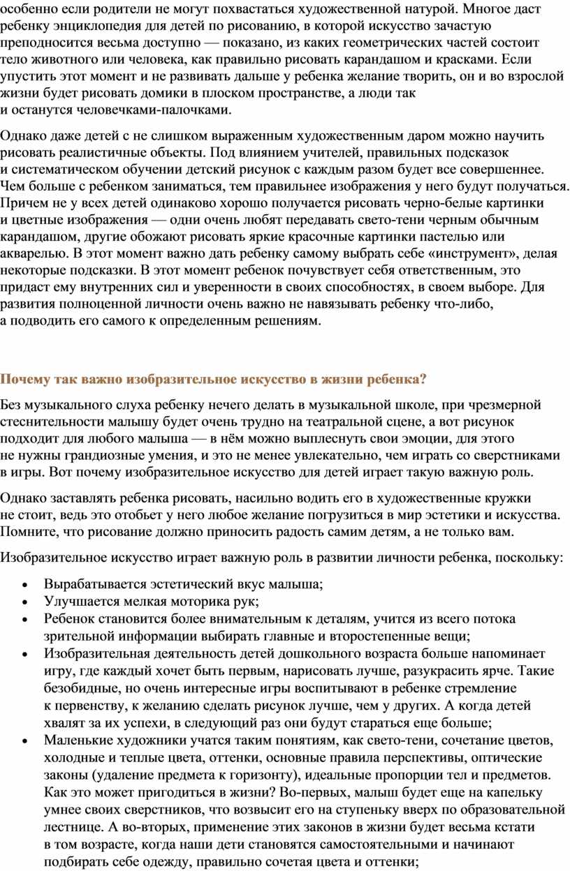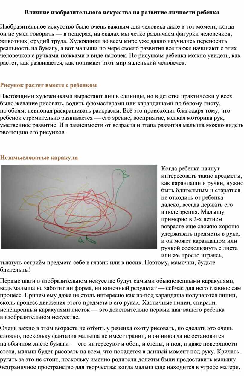 Изобразительное искусство играет важную роль в развитии личности ребенка, поскольку: