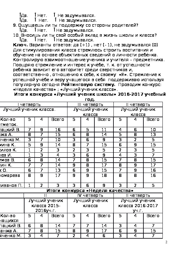 10. Вносишь ли ты свой особый вклад в жизнь школы и класса?