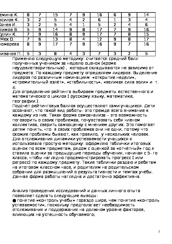 Подсчёт рейтинговых баллов осуществляют сами учащиеся. Дети