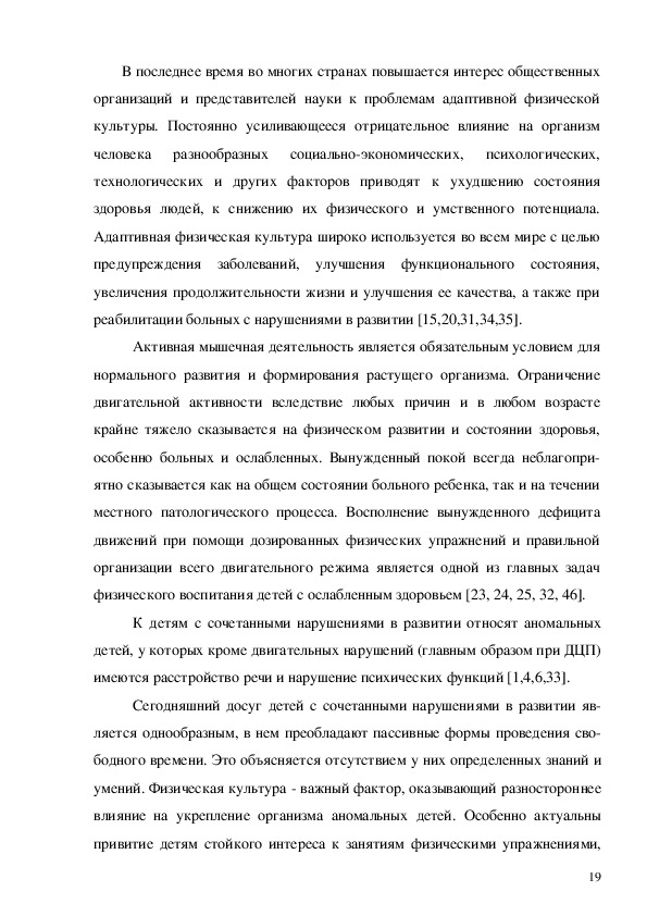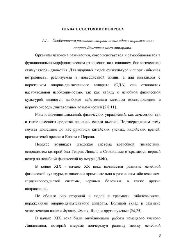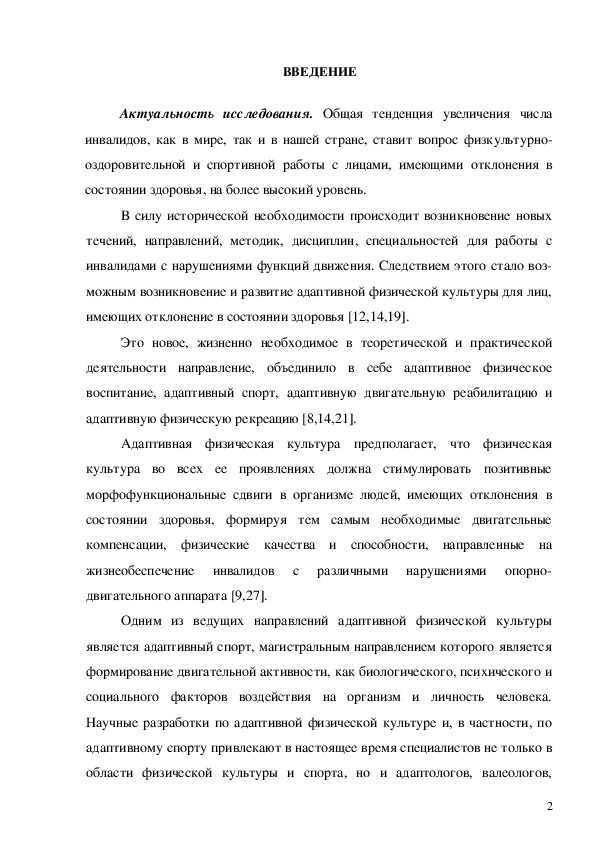 В силу исторической необходимости происходит возникновение новых течений, направлений, методик, дисциплин, специальностей для работы с инвалидами с нарушениями функций движения. Следствием этого стало возможным возникновение и развитие адаптивной физической культуры для лиц, имеющих отклонение в состоянии здоровья [12,14,19].