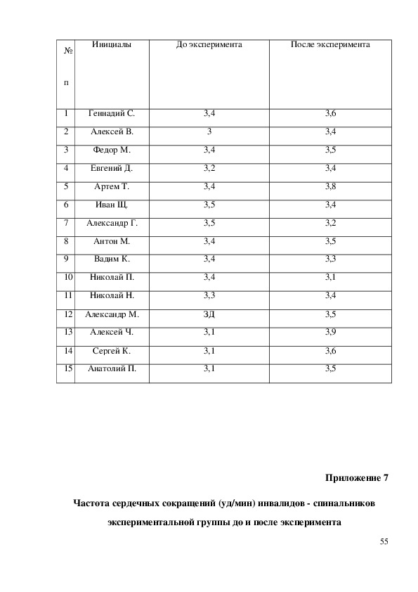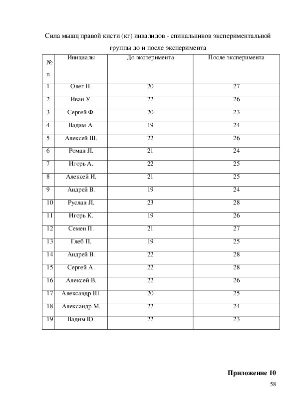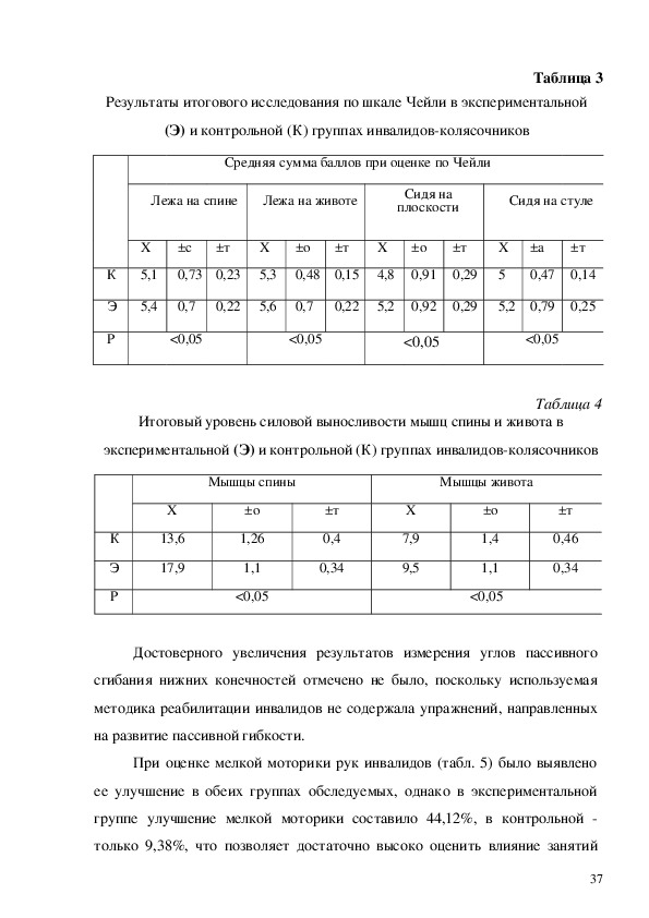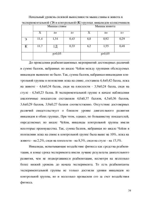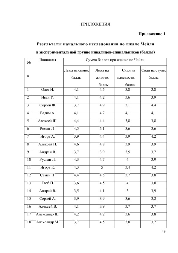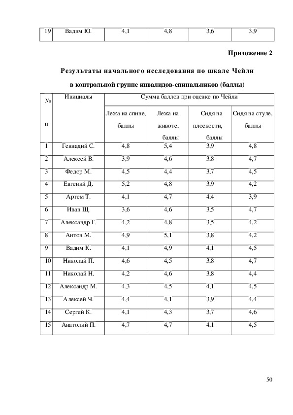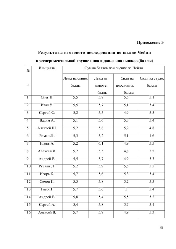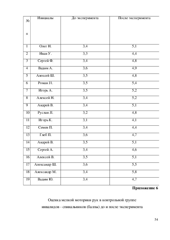 инвалидов спинальников (баллы) до и после эксперимента