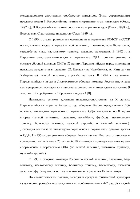 инвалидов, как в мире, так и в нашей стране, ставит вопрос физкультурно