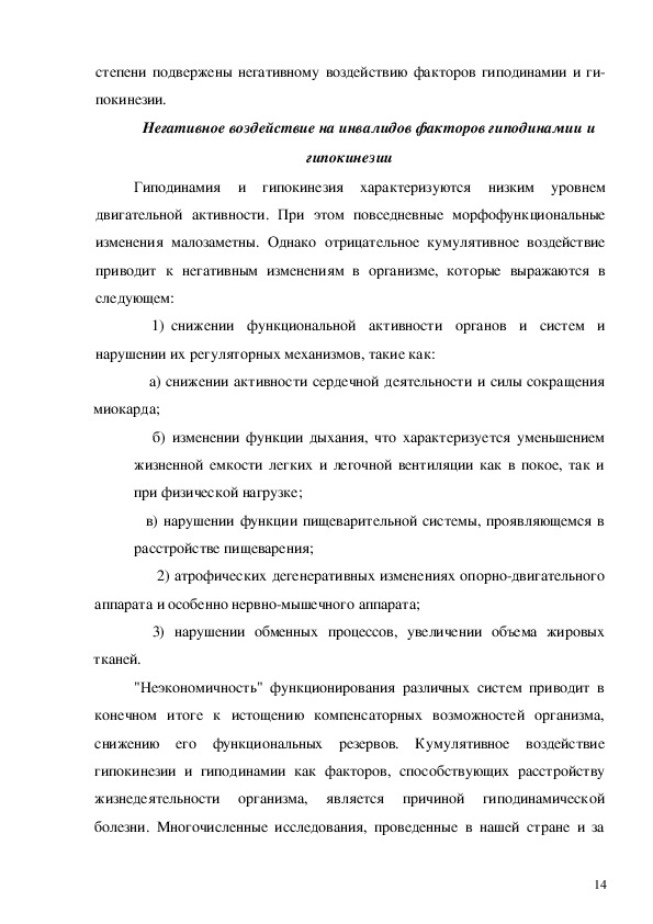 Предмет исследований изменения в организме инвалидов под