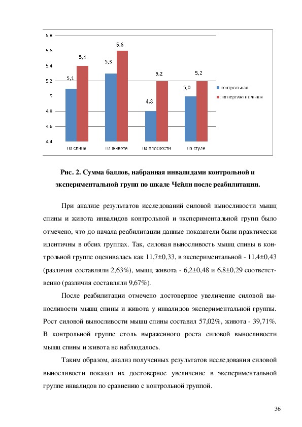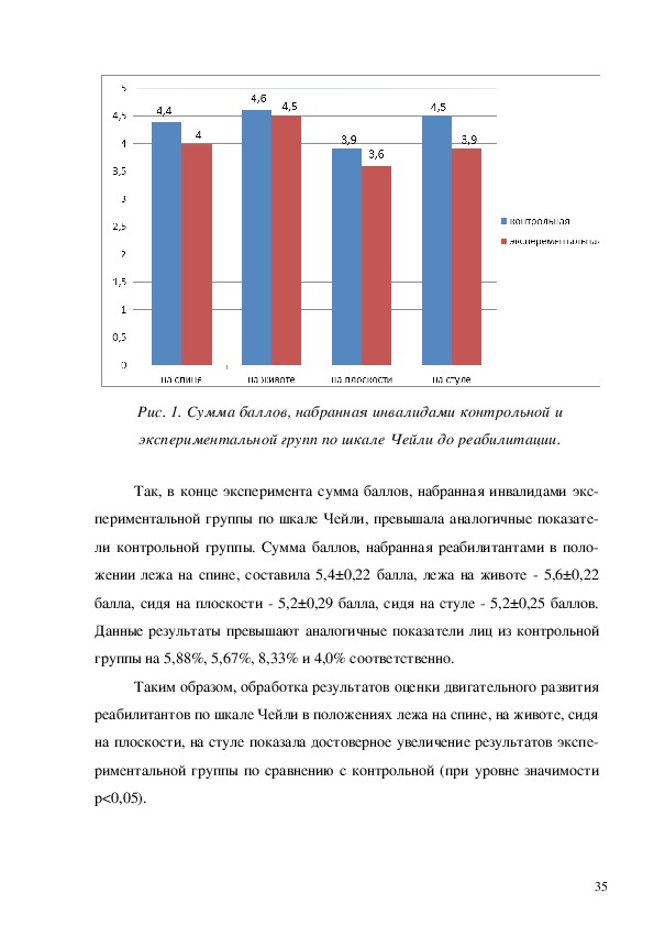 в экспериментальной группе инвалидовспинальников (баллы)