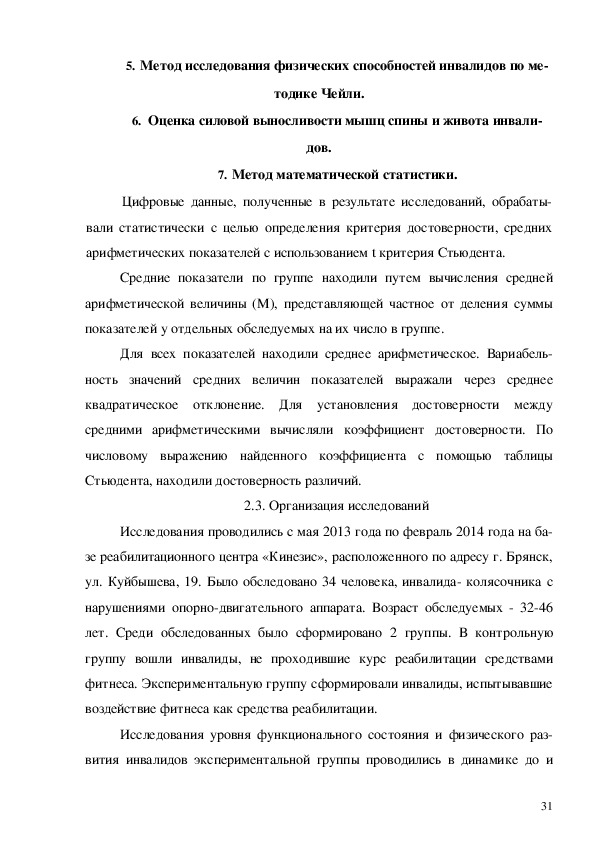 возможностей реабилитации инвалидовколясочников средствами фитнесса.