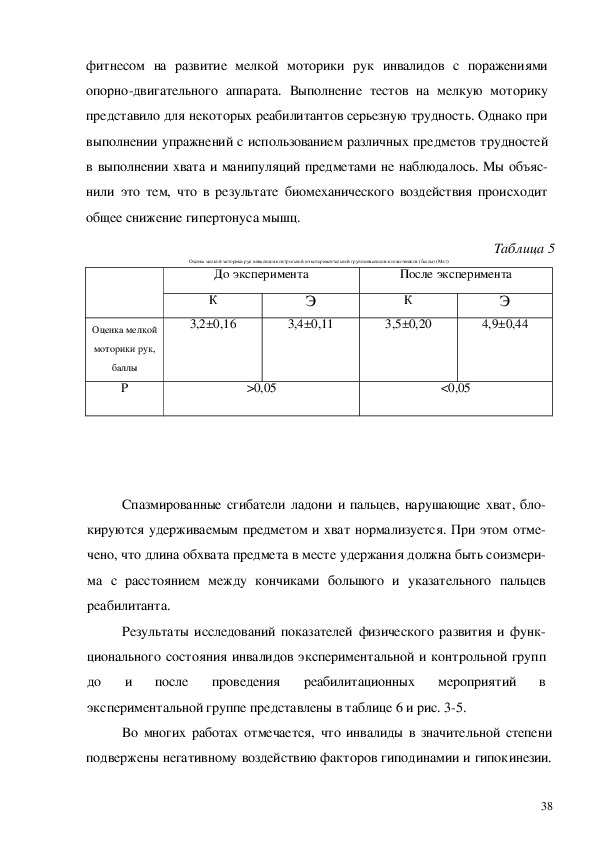 вершенствования моторики инвалида.