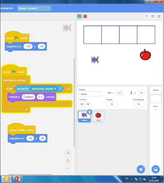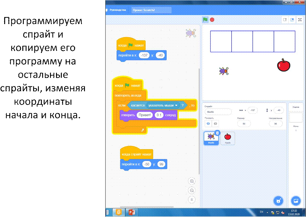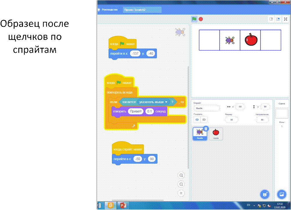 спрайту должно появляться название этого спрайта. При щелчке по спрайту спрайт