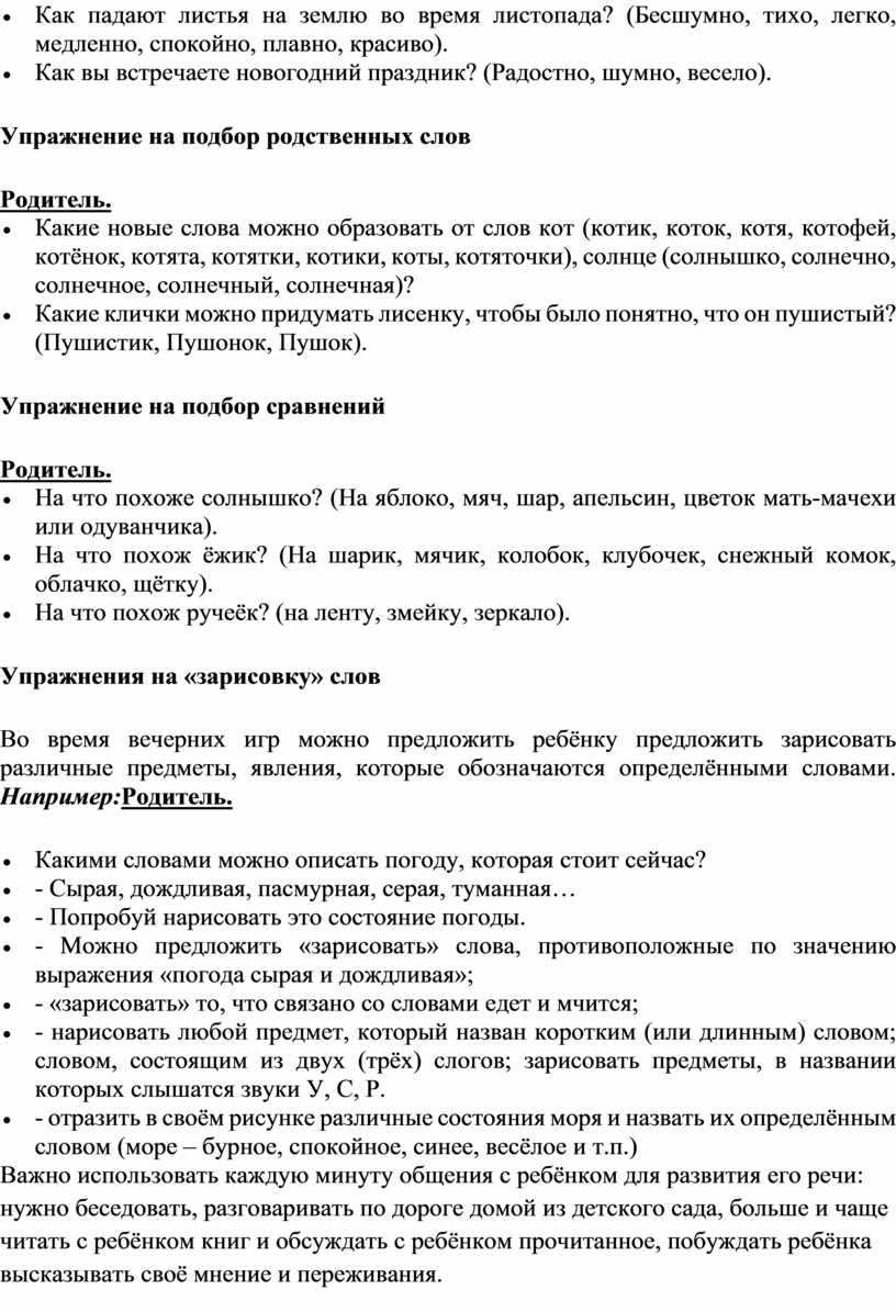 Для поддержания интереса к звучащему слову, для уточнения имеющегося словаря и его обогащения можно использовать следующие упражнения.