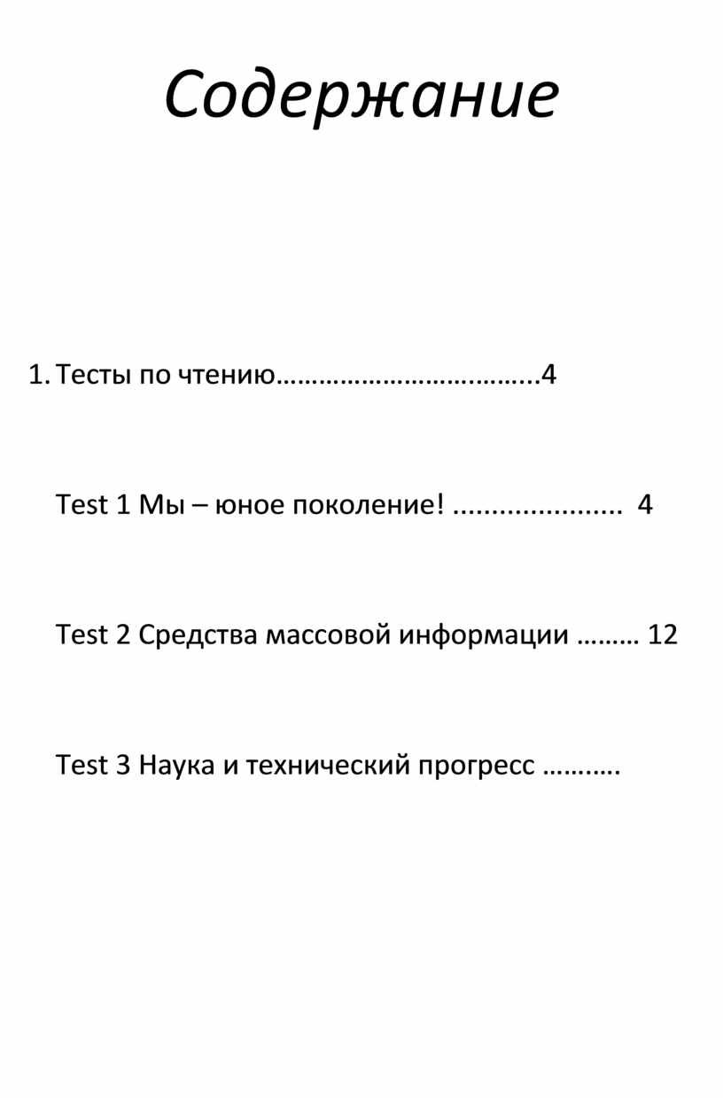 1. Тесты по чтению……………………….……...4