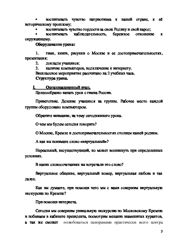 3. создать эмоциональный настрой, способствующий повышению интереса к истории нашей страны;