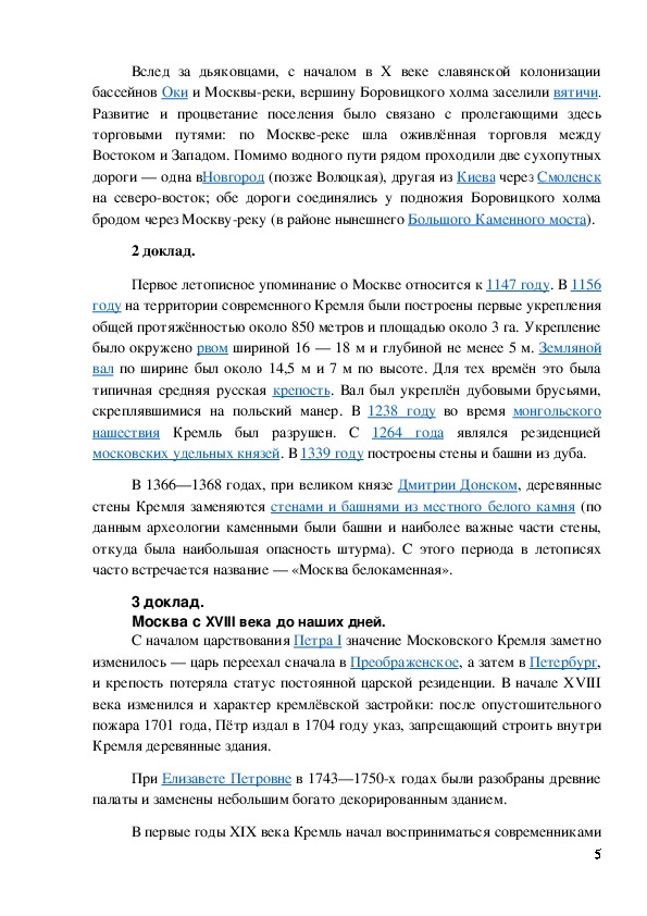 Прослушать доклады о Московском Кремле.
