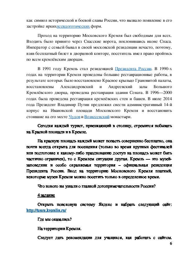 4 группа готовит доклад и презентацию об улицах и площадях Кремля.