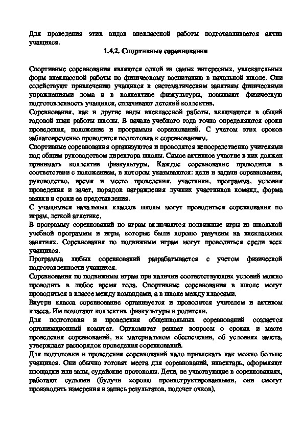 учащихся. Они обычно готовят места для соревнований, инвентарь, оформляют