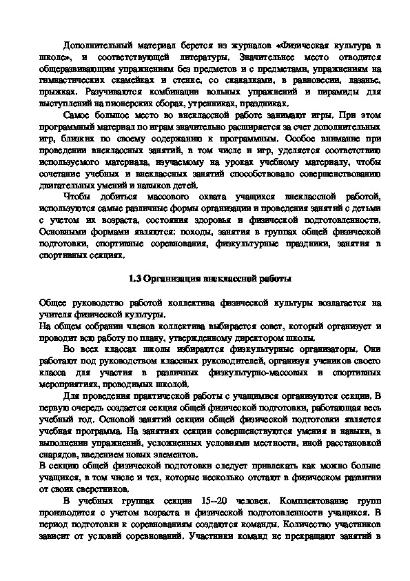 1.1 Задачи внеклассной работы по физическому воспитанию