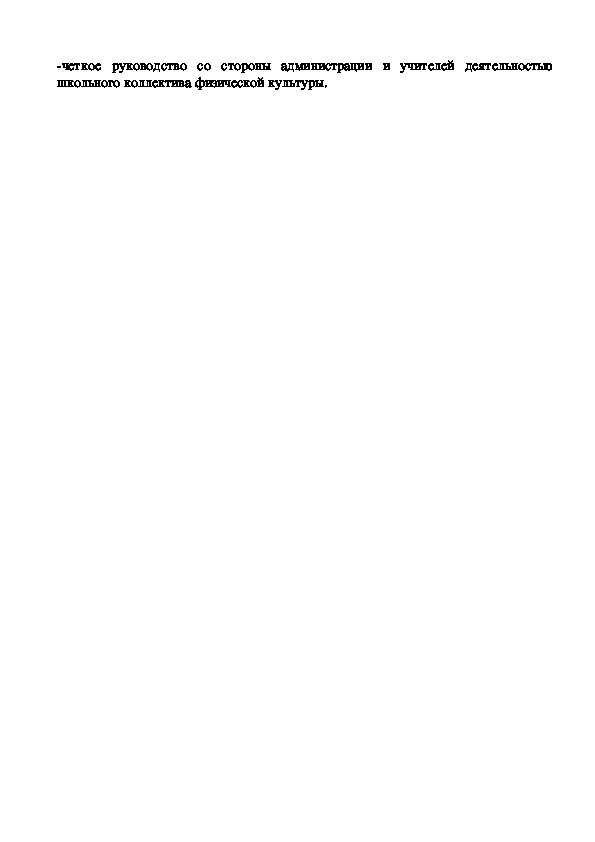 условий для занятий, к руководству секциями, командами;четкое руководство со стороны администрации и учителей деятельностью