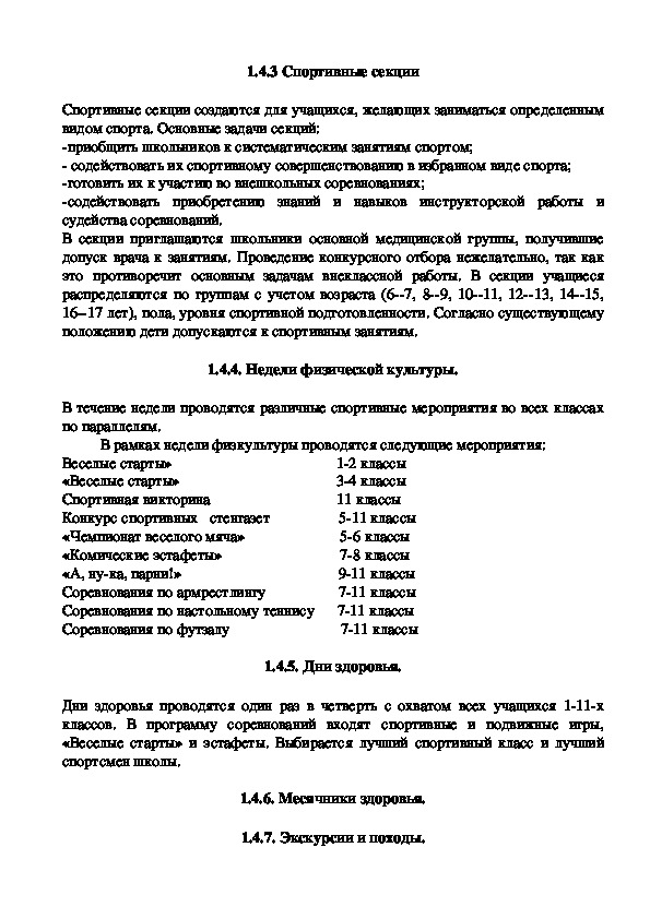 производить измерения и запись результатов, подсчет очков).1.4.3 Спортивные секции