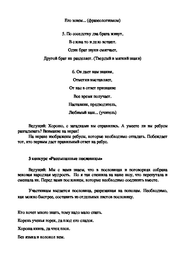 Ведущий: Хорошо, с загадками вы справились. А умеете ли вы ребусы