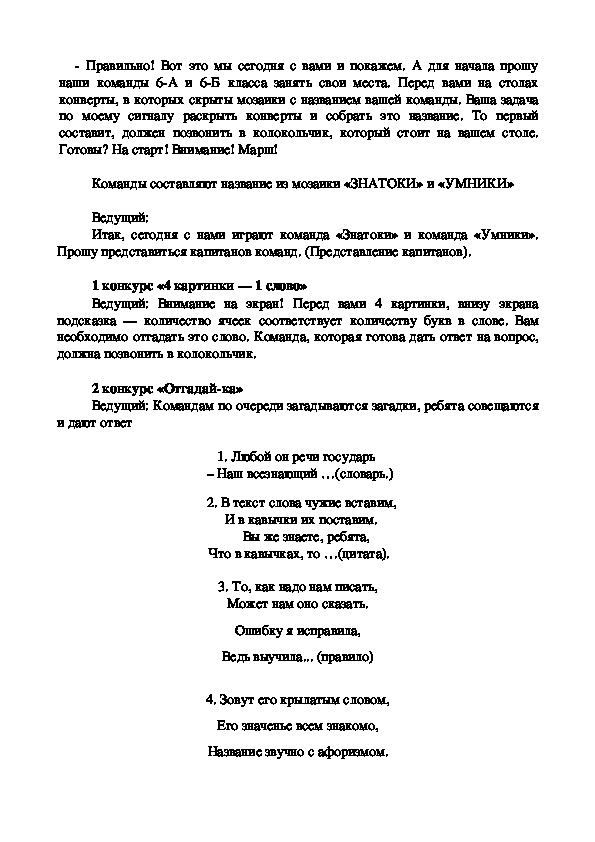 Итак, сегодня с нами играют команда «Знатоки» и команда «Умники».