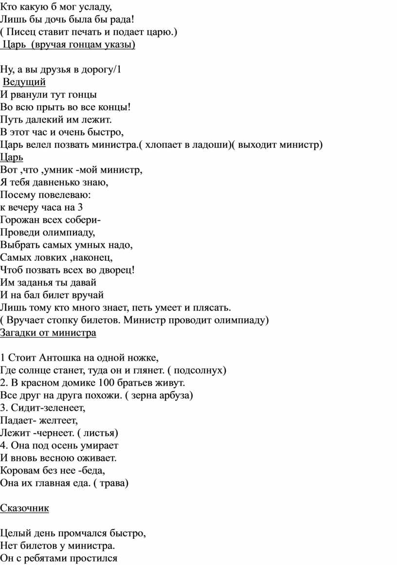 ( Вручает стопку билетов. Министр проводит олимпиаду)