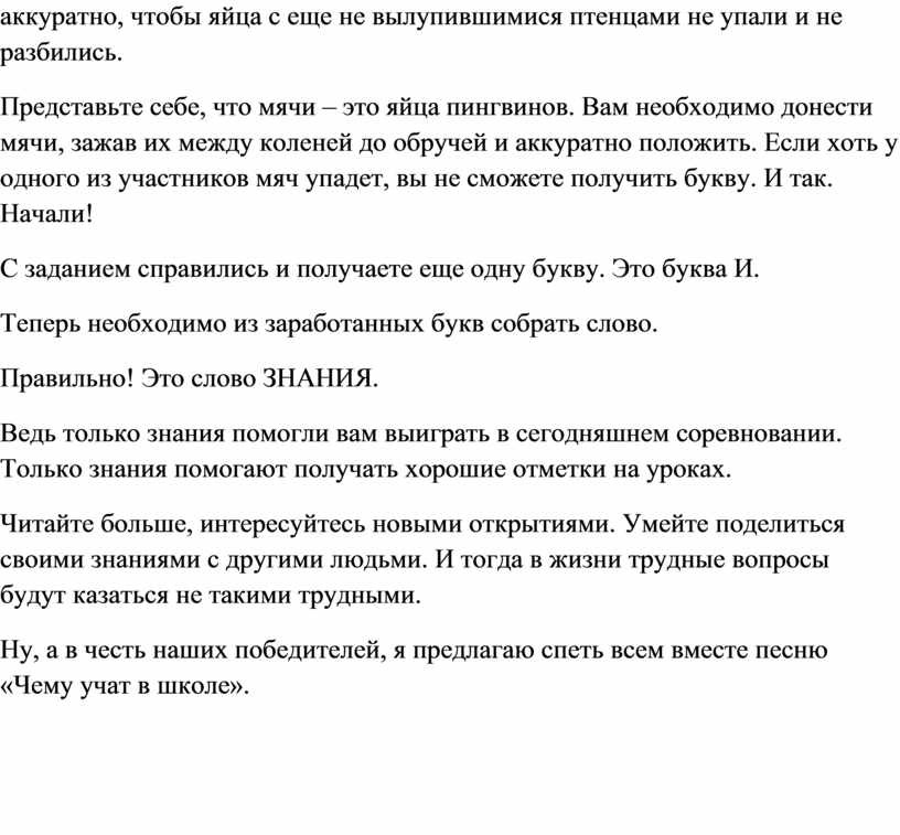 Ведь только знания помогли вам выиграть в сегодняшнем соревновании. Только знания помогают получать хорошие отметки на уроках.