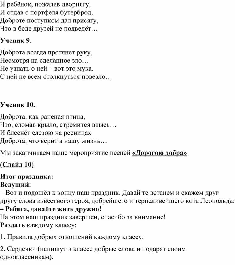 Мы заканчиваем наше мероприятие песней «Дорогою добра»