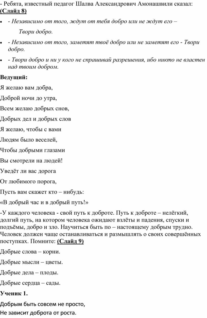 - Ребята, известный педагог Шалва Александрович Амонашвили сказал: (Слайд 8)