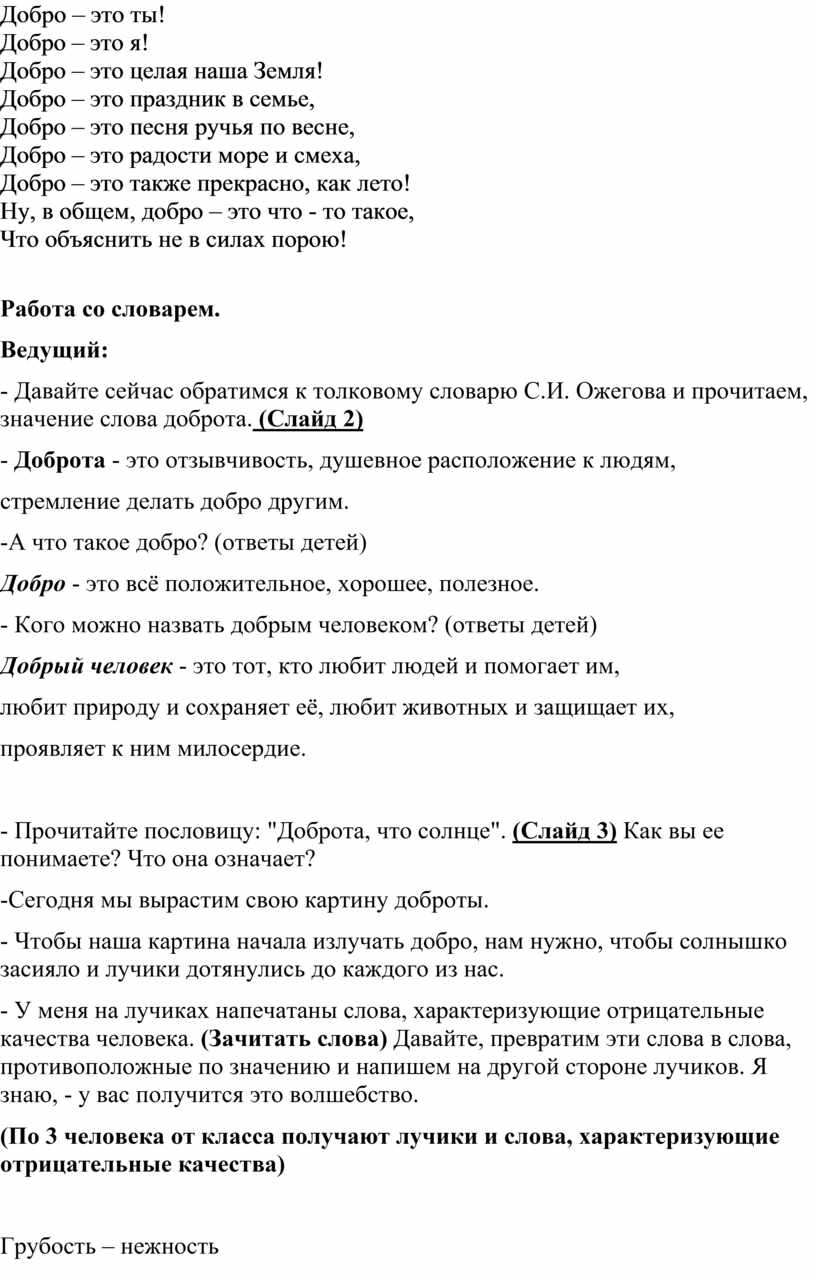 - Давайте сейчас обратимся к толковому словарю С.И. Ожегова и прочитаем, значение слова доброта. (Слайд 2)
