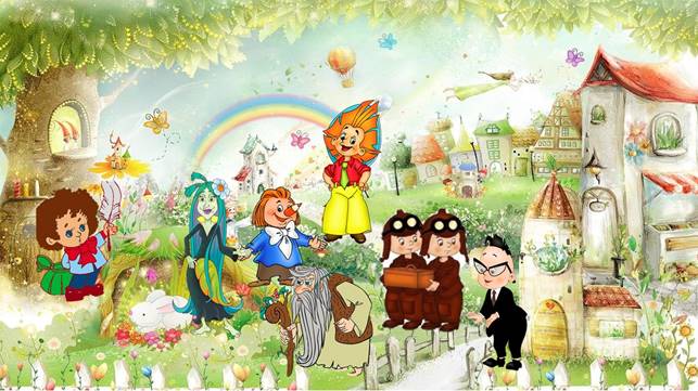 Появляются Незнайка, Карандаш, Цветик и Знайка.