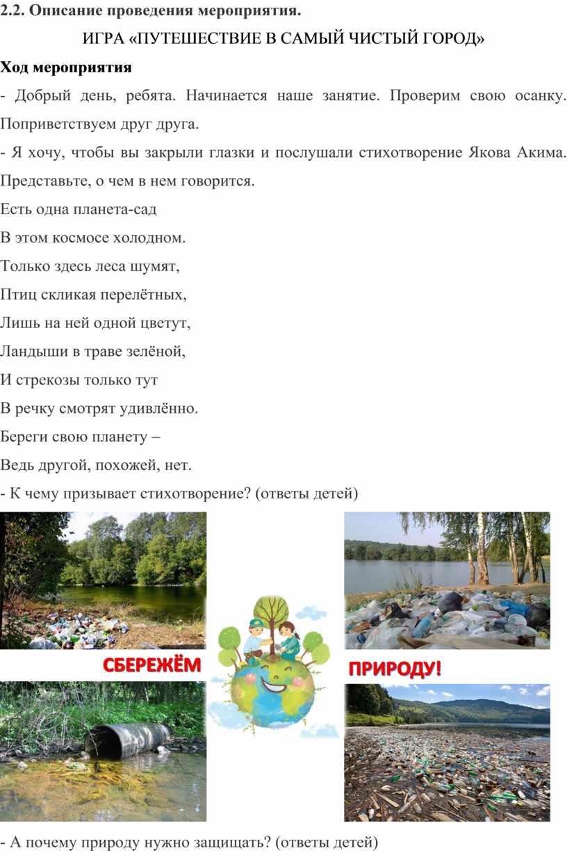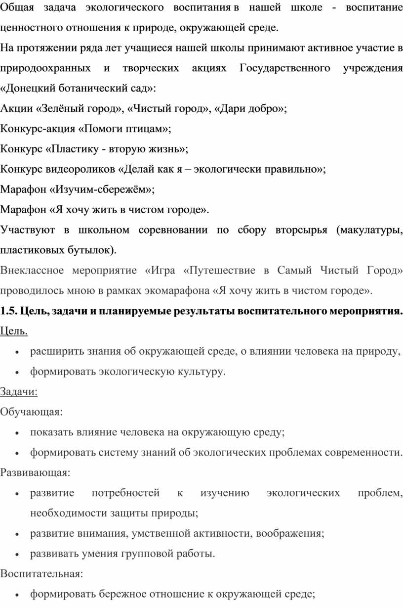 Внеклассное мероприятие «Игра «Путешествие в Самый Чистый Город» проводится в форме коллективной экологической игры - путешествия.