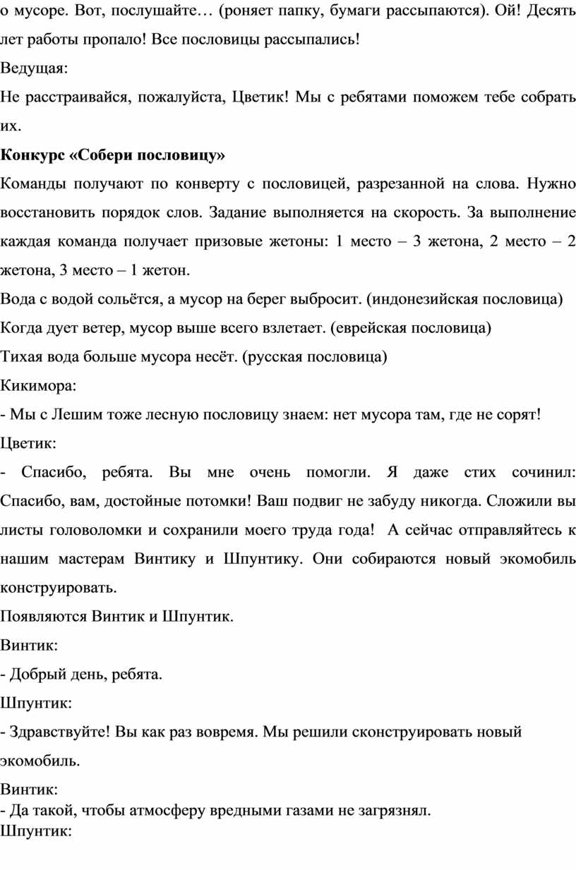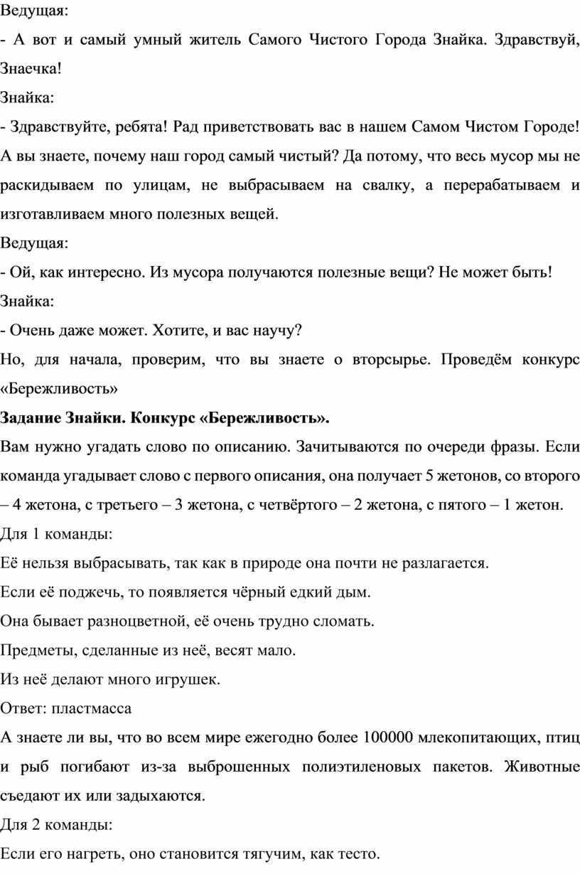 Внеклассное мероприятие «Игра «Путешествие в Самый Чистый Город».