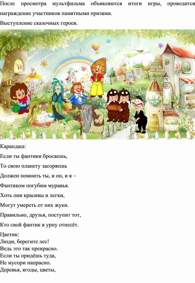 В зависимости от условий для проведения мероприятия нужно подготовить ведущих (ведущими могут выступить старшие школьники), костюмов для них. Также можно воспользоваться мультимедийной презентацией с озвученными персонажами.