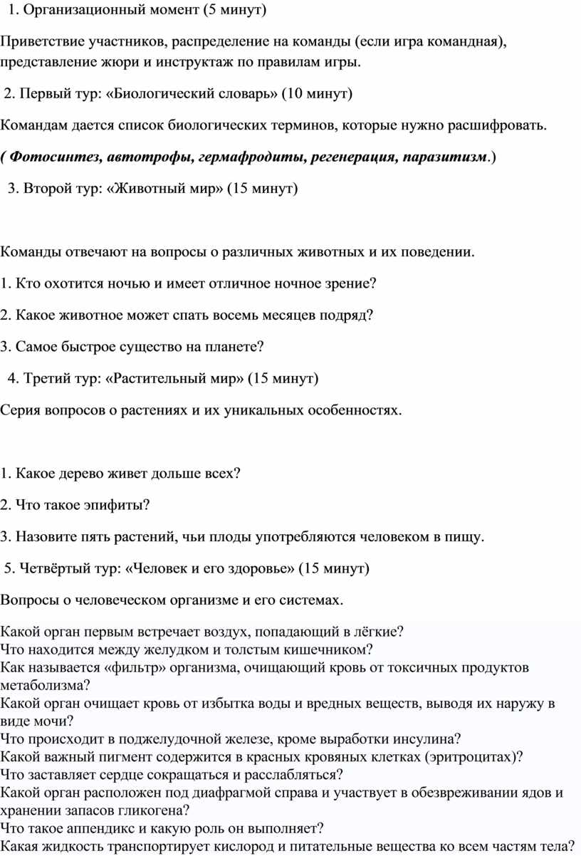 5. Четвёртый тур: «Человек и его здоровье» (15 минут)
