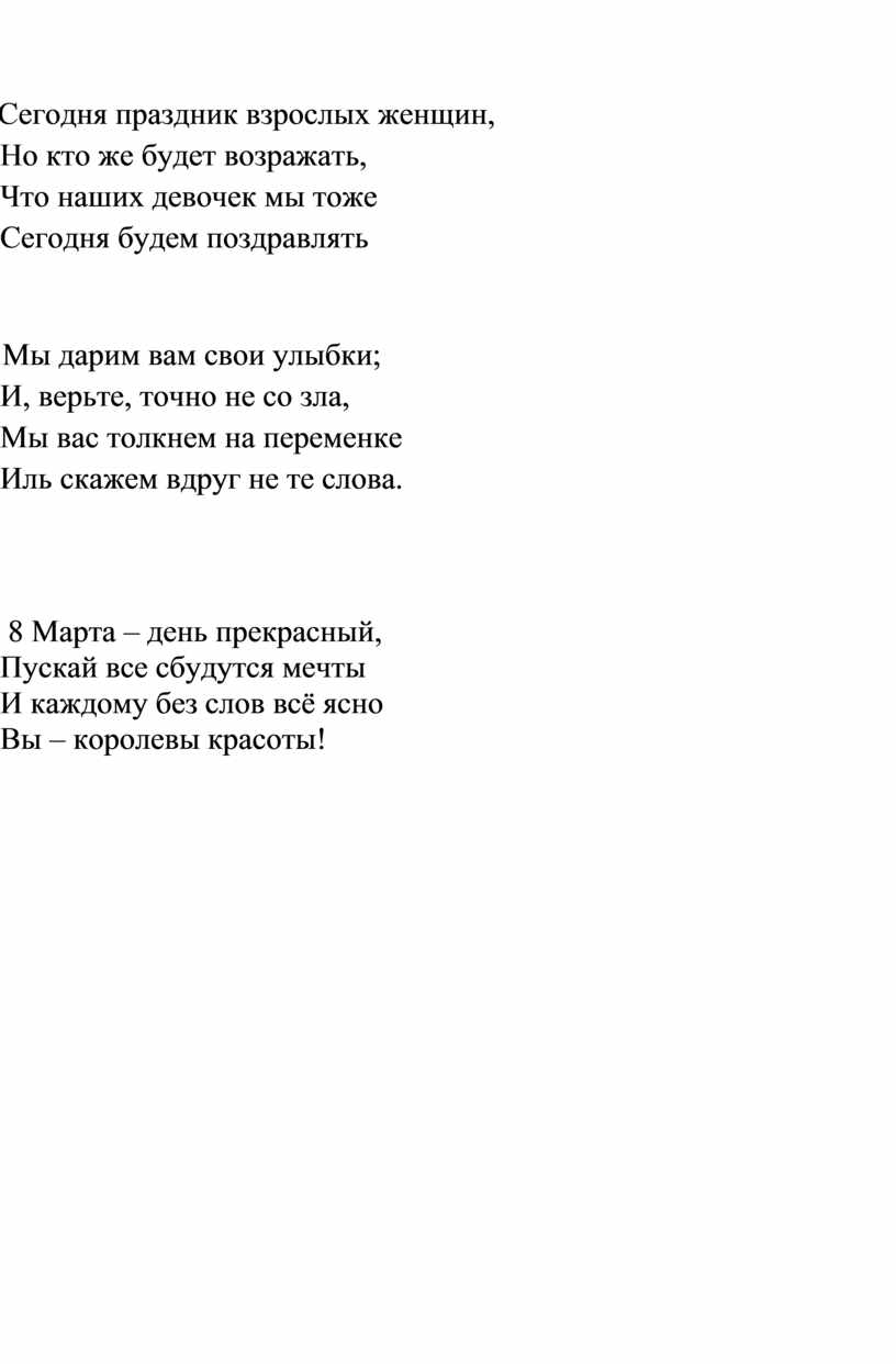 Сегодня праздник взрослых женщин, Но кто же будет возражать, Что наших девочек мы тоже Сегодня будем поздравлять