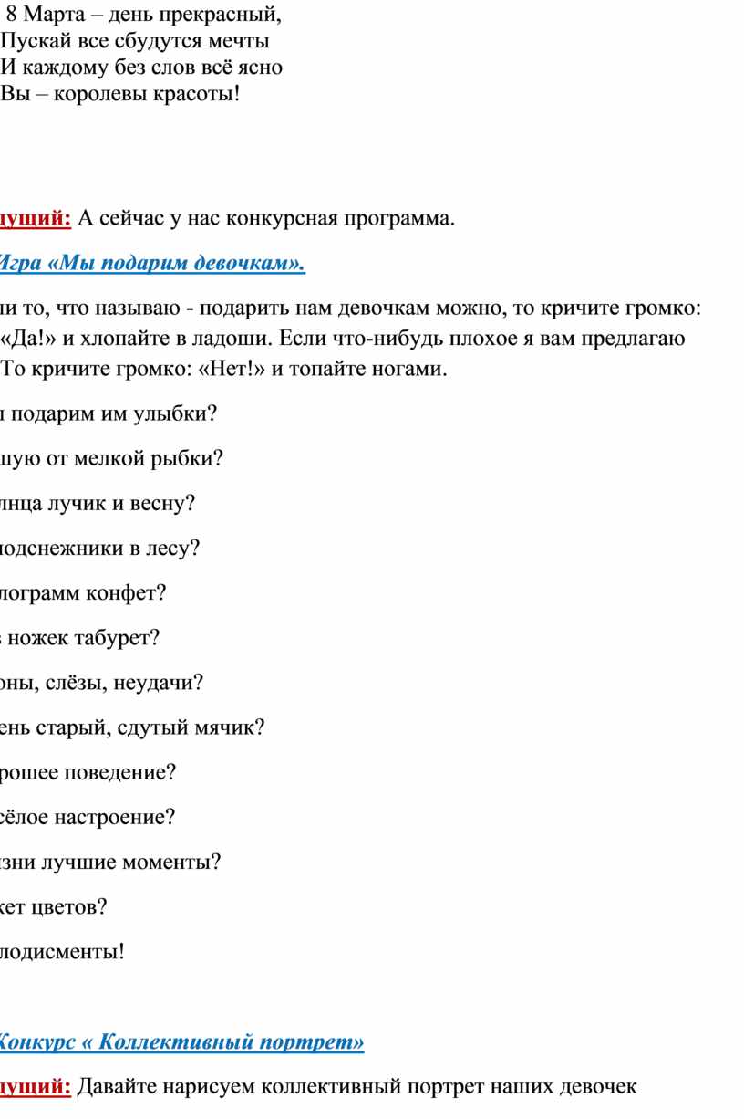 Ведущий: Давайте нарисуем коллективный портрет наших девочек