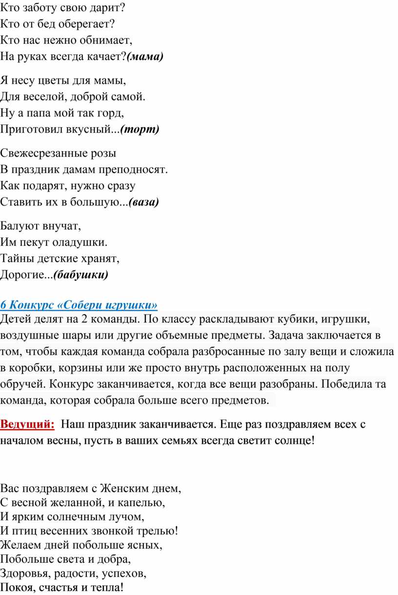 Ведущий: Наш праздник заканчивается. Еще раз поздравляем всех с началом весны, пусть в ваших семьях всегда светит солнце!