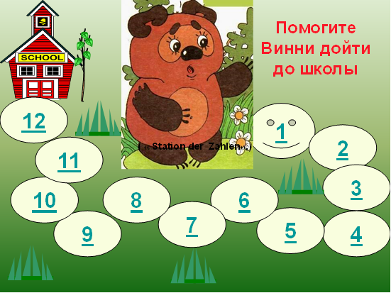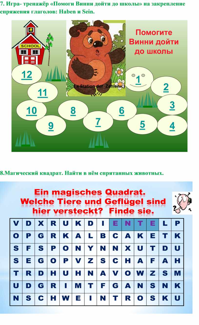 7. Игра- тренажёр «Помоги Винни дойти до школы» на закрепление спряжения глаголов: Haben и Sein.