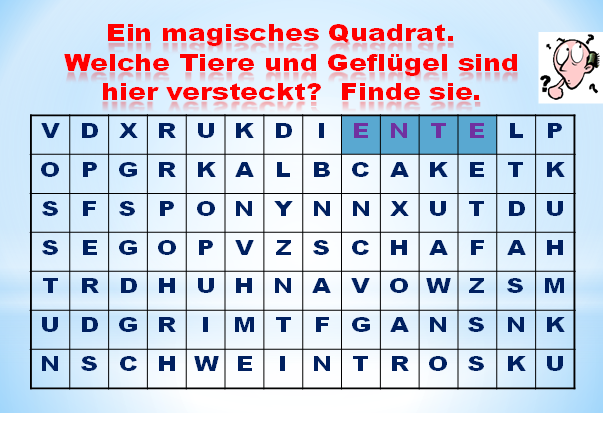 8.Магический квадрат. Найти в нём спрятанных животных.