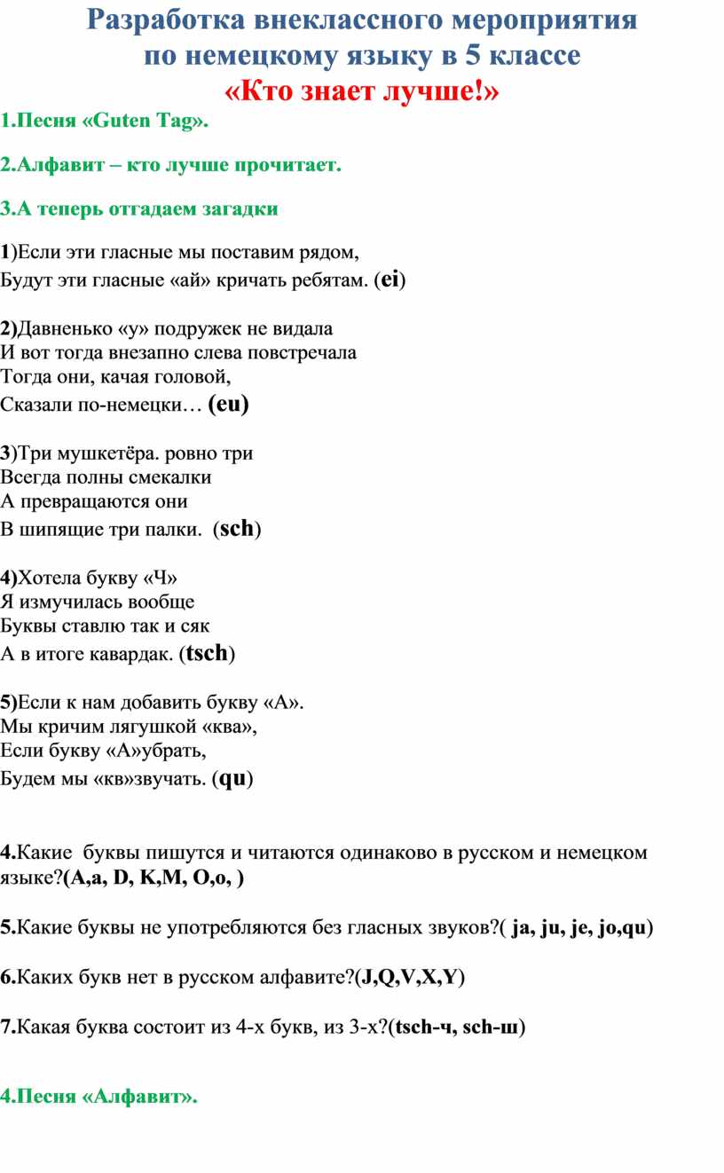 7.Какая буква состоит из 4-х букв, из 3-х?(tsch-ч, sch-ш)