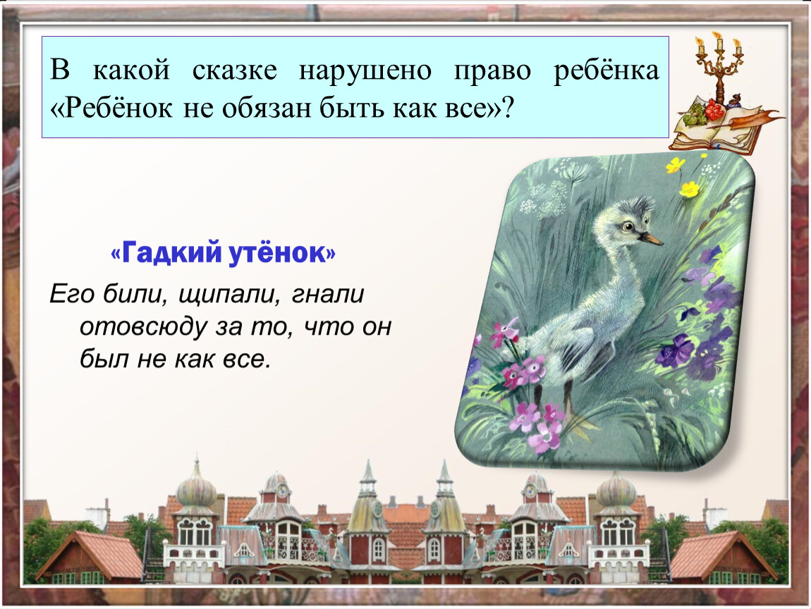В какой сказке нарушено право ребёнка «Ребёнок не обязан быть как все»?
