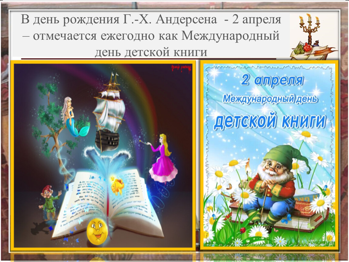 В день рождения Г.-Х. Андерсена - 2 апреля – отмечается ежегодно как Международный день детской книги