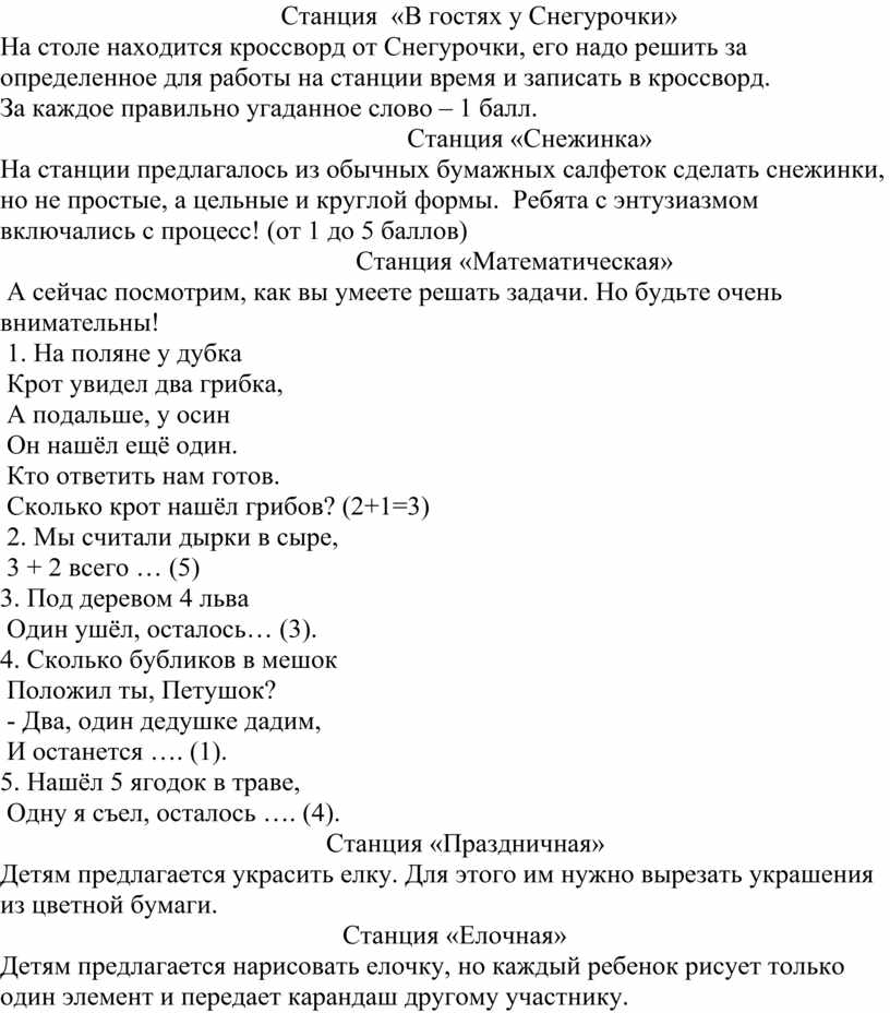 Сценарий новогодней игры по станциям «Новогодние забавы» для проведения новогодних мероприятий в начальной школе в преддверии новогодних праздников и зимних каникул.