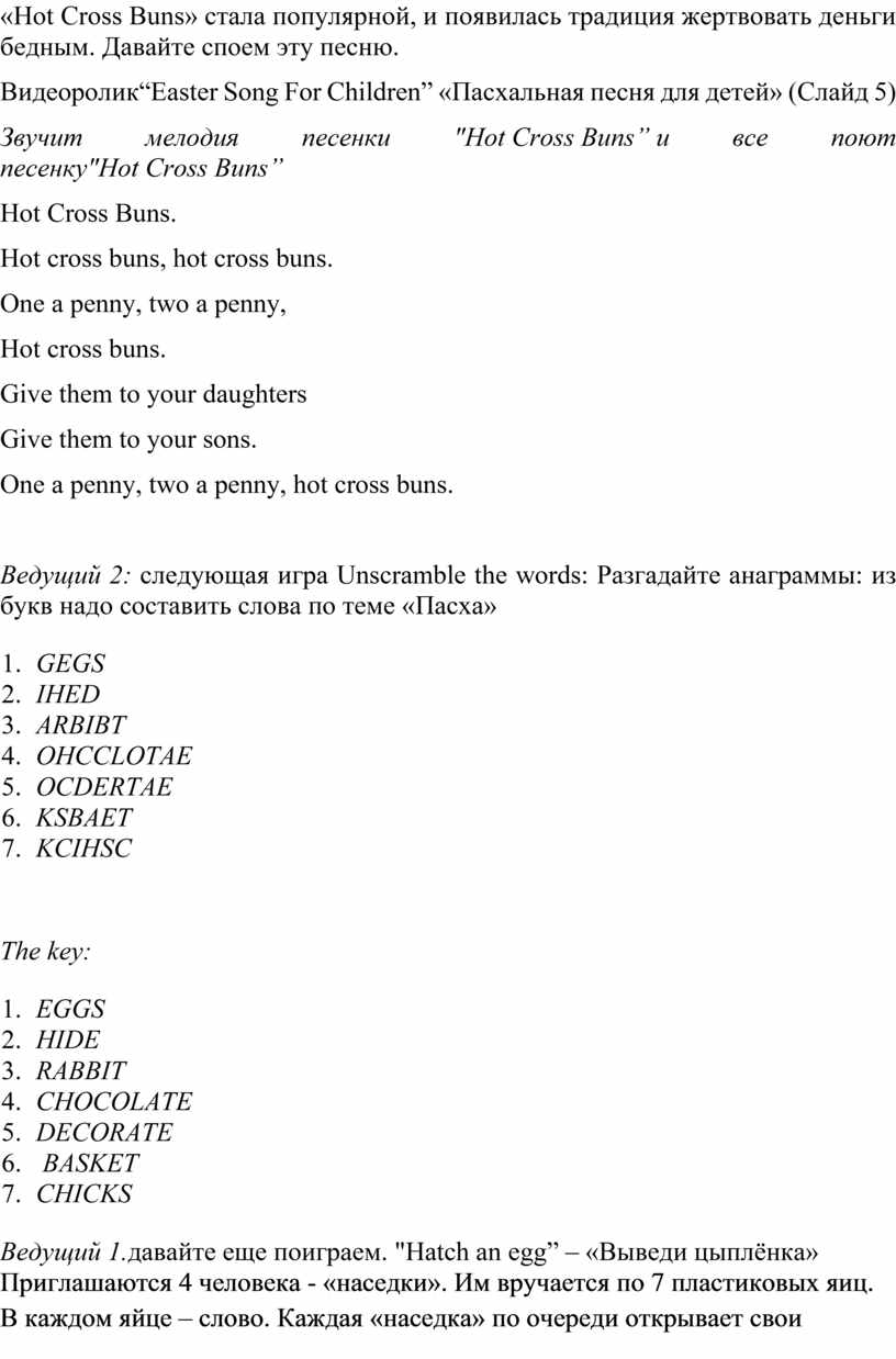 Ведущий 2: Надеюсь, вы знаете, как отмечается Пасха в России. Сегодня мы поговорим о британских традициях этого праздника. Мы будем играть и петь.