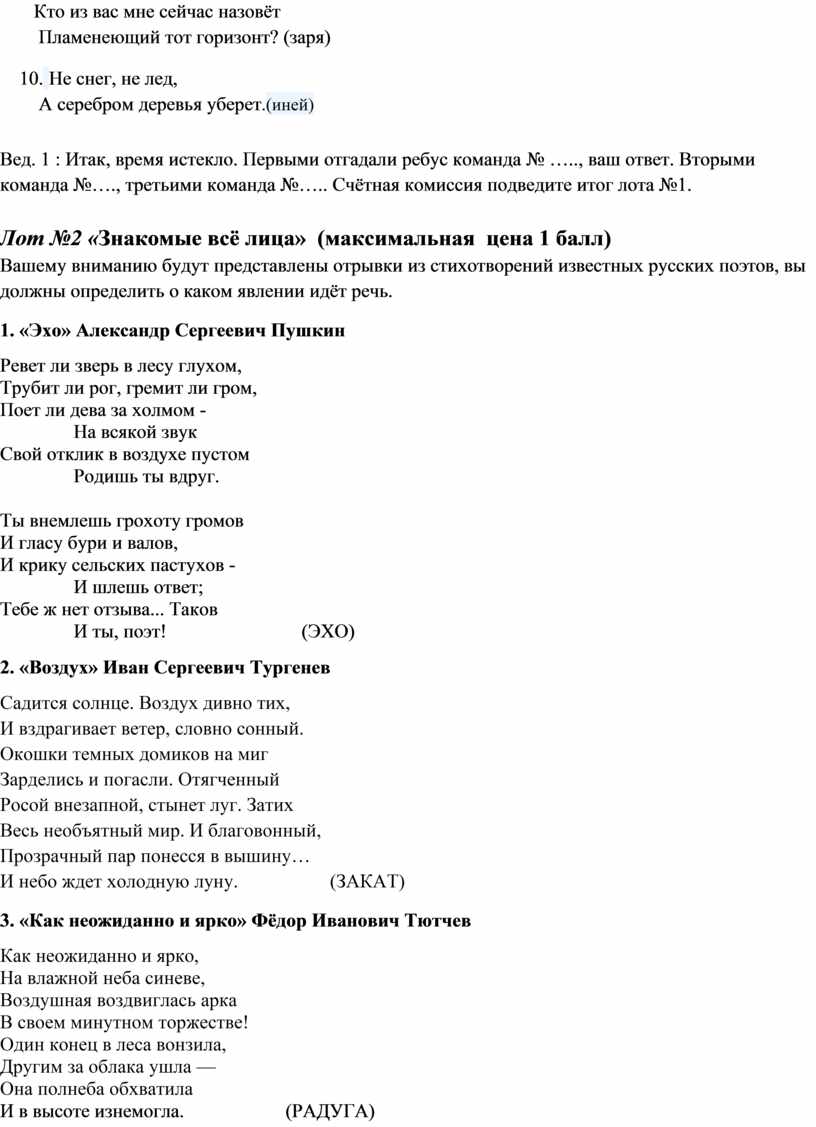 Вашему вниманию будут представлены отрывки из стихотворений известных русских поэтов, вы должны определить о каком явлении идёт речь.