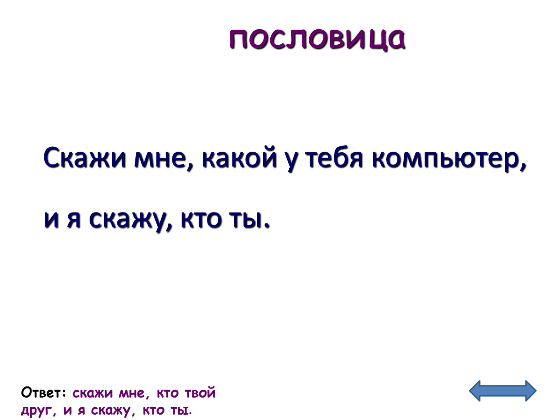 Ответ: скажи мне, кто твой друг, и я скажу, кто ты.