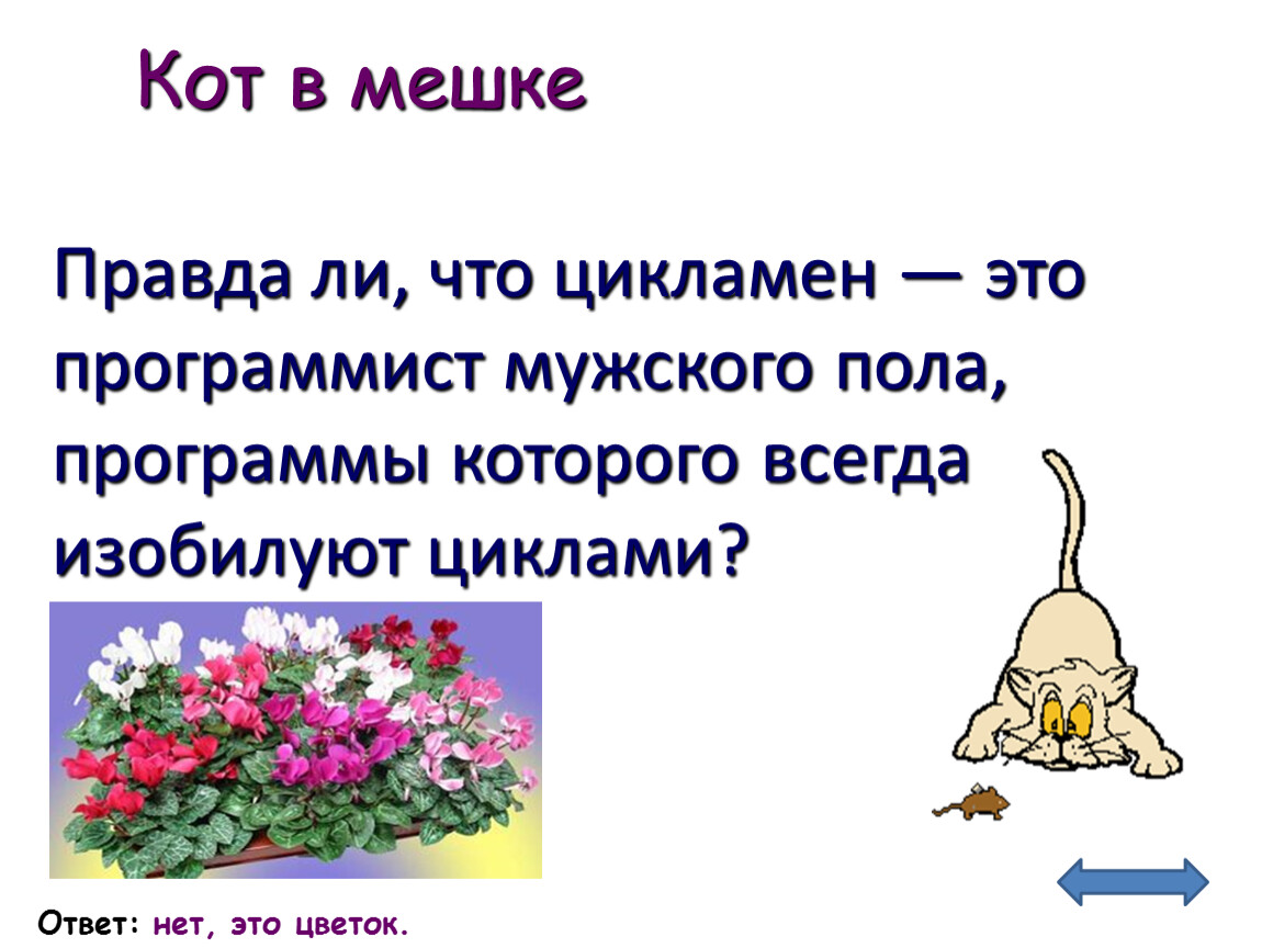 Правда ли, что цикламен — это программист мужского пола, программы которого всегда изобилуют циклами?