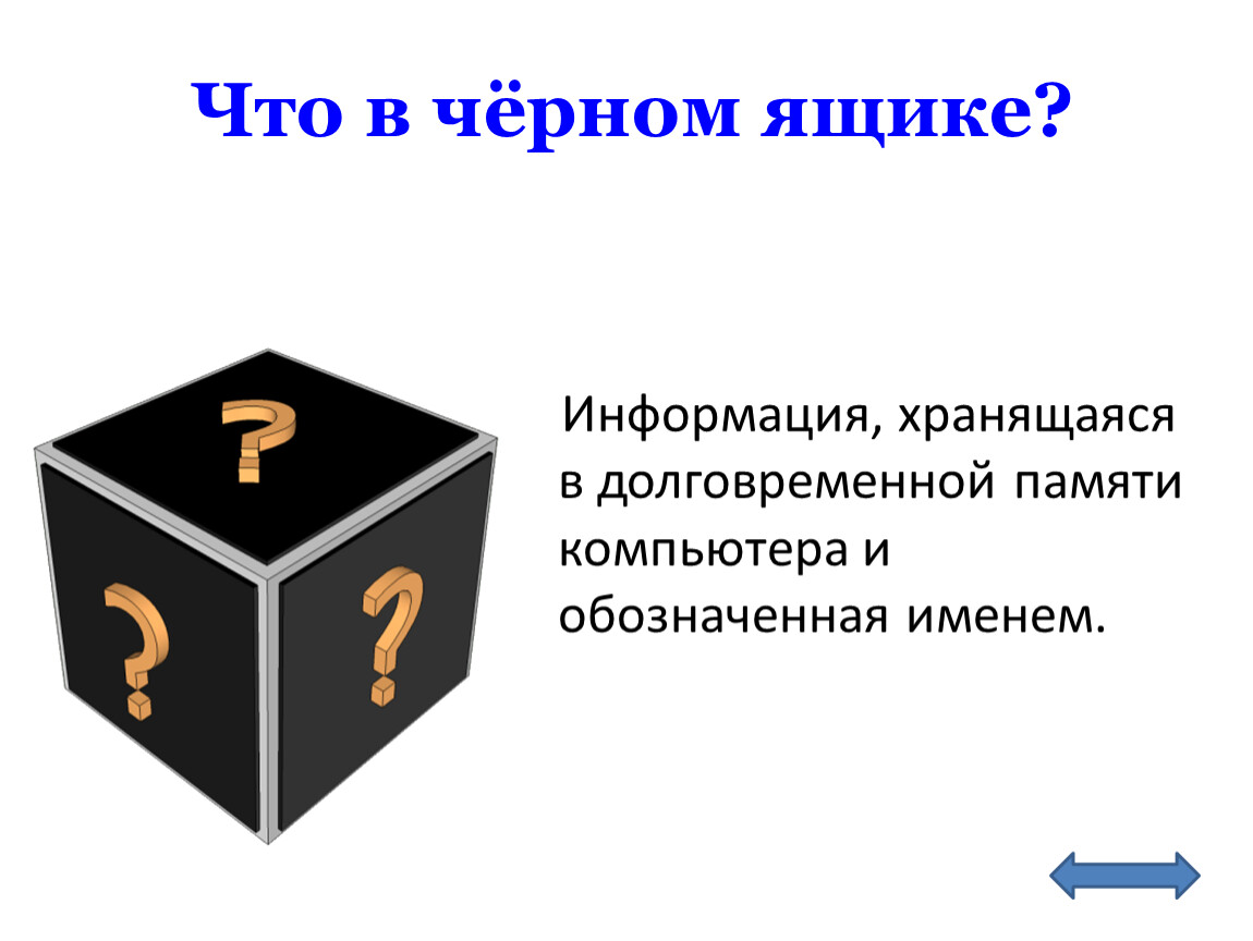Информация, хранящаяся в долговременной памяти компьютера и обозначенная именем.