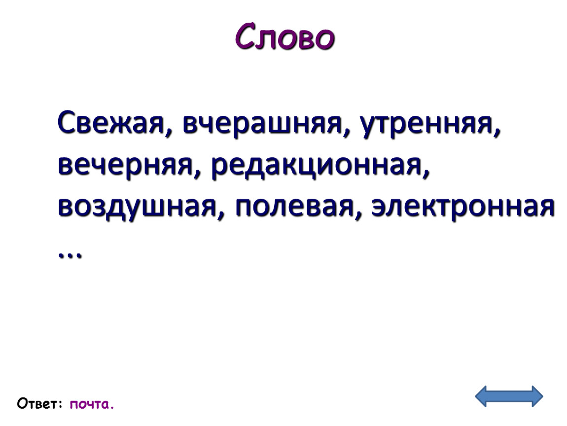 Свежая, вчерашняя, утренняя, вечерняя, редакционная, воздушная, полевая, электронная ...