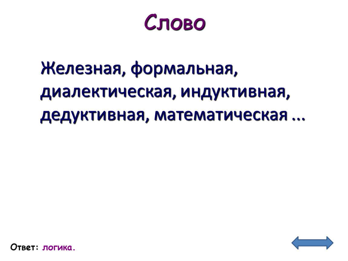 Железная, формальная, диалектическая, индуктивная, дедуктивная, математическая ...