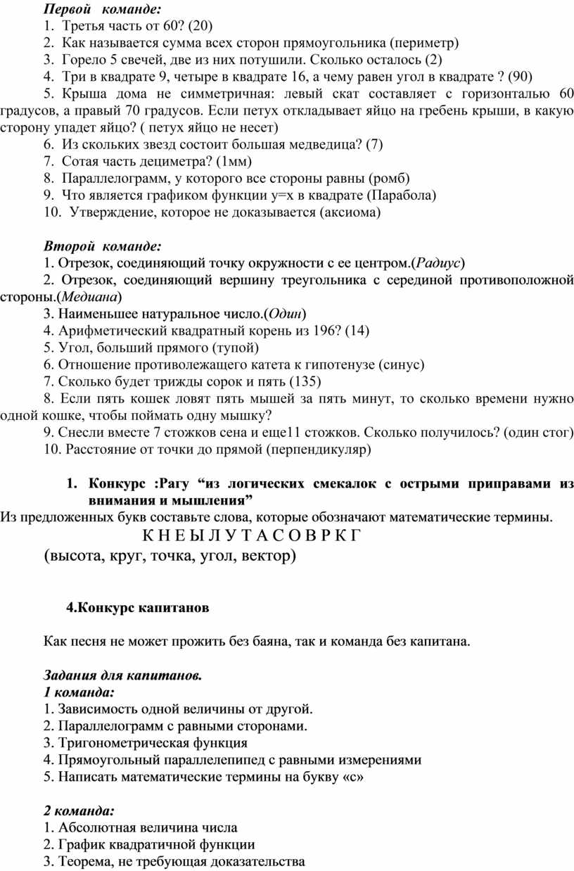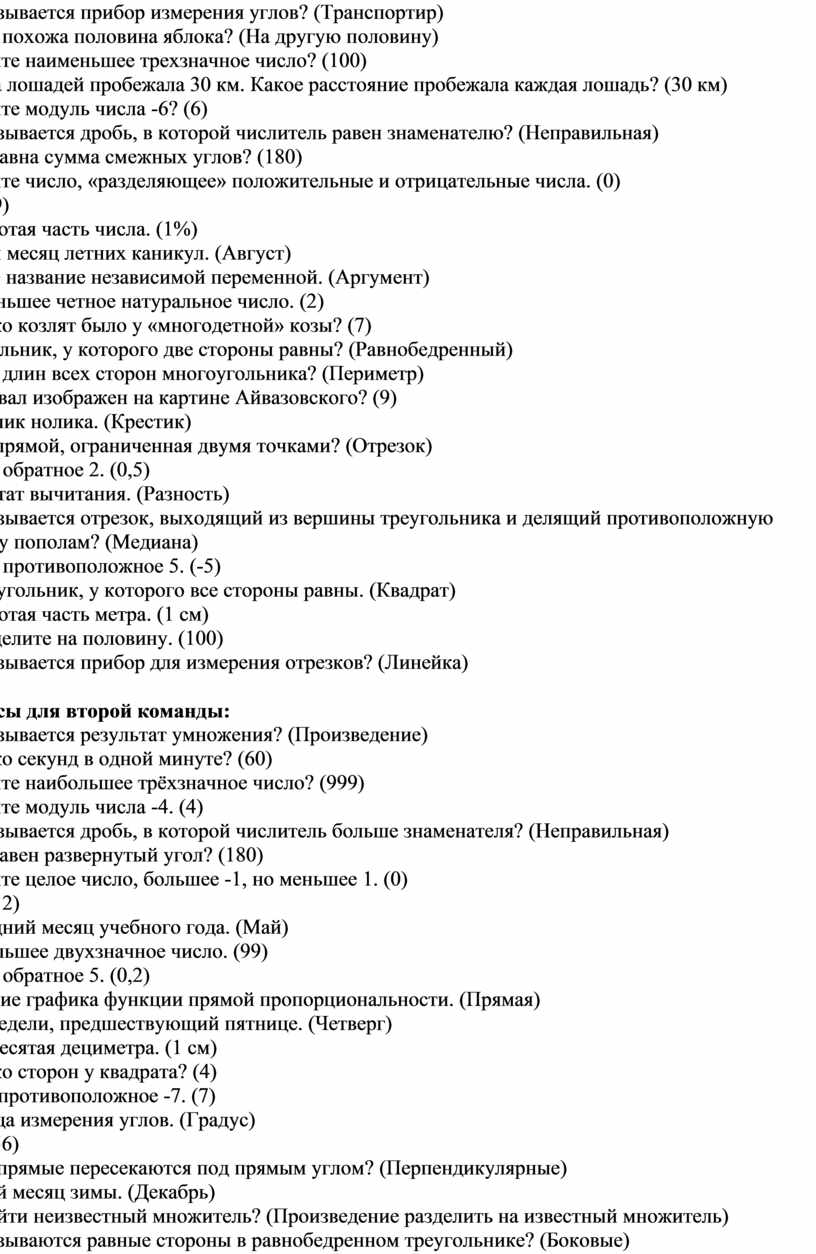 Вопросы для первой команды: