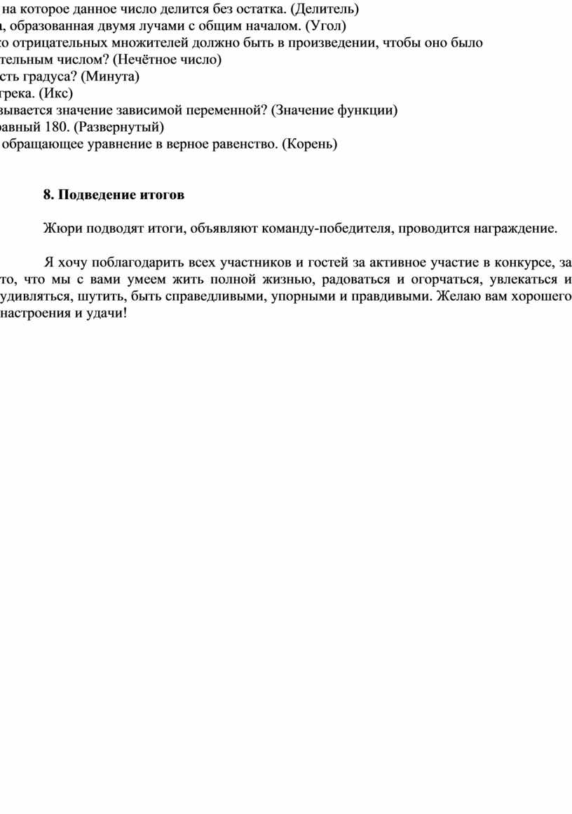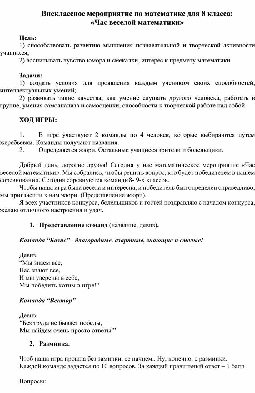 Внеклассное мероприятие по математике для 8 класса: